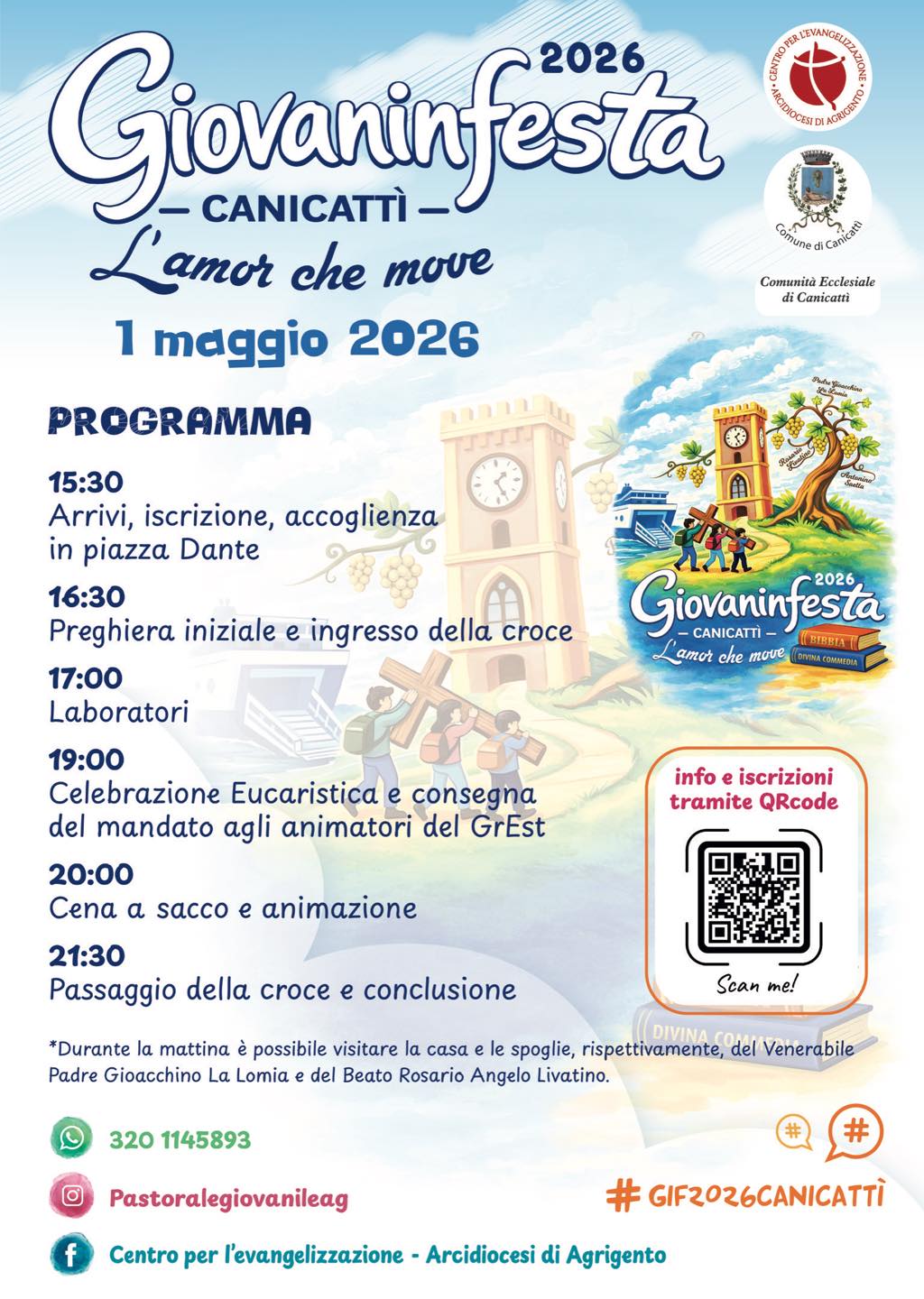 Il countdown per la 39ª edizione del Giovaninfesta 2026 è ufficialmente iniziato, segnando un ritorno atteso da oltre vent’anni: Canicattì si prepara a diventare il cuore pulsante della diocesi di Agrigento. Sotto la guida del Centro per l’Evangelizzazione e il coordinamento di don Gerlando Casula” e don Calogero Morgante, l’evento si ispira al potente richiamo dantesco de “L’Amor che move, un invito a riscoprire la fede come forza dinamica che spinge al cammino e all’impegno. Questa edizione carica la festa di un profondo valore civile, intrecciando la spiritualità alla memoria dei figli più illustri della città. I passi dei giovani saranno guidati dalla testimonianza del Beato Rosario Livatino verso la chiesa di Santa Chiara, unendo idealmente il suo sacrificio a quello del magistrato Antonino Saetta e di suo figlio Stefano, esempi di integrità e dovere. A completare questo orizzonte di senso è la carità operosa del Venerabile Padre Gioacchino La Lomia, il frate dei poveri che dal Santuario della Madonna della Rocca continua a ispirare umiltà e servizio.
