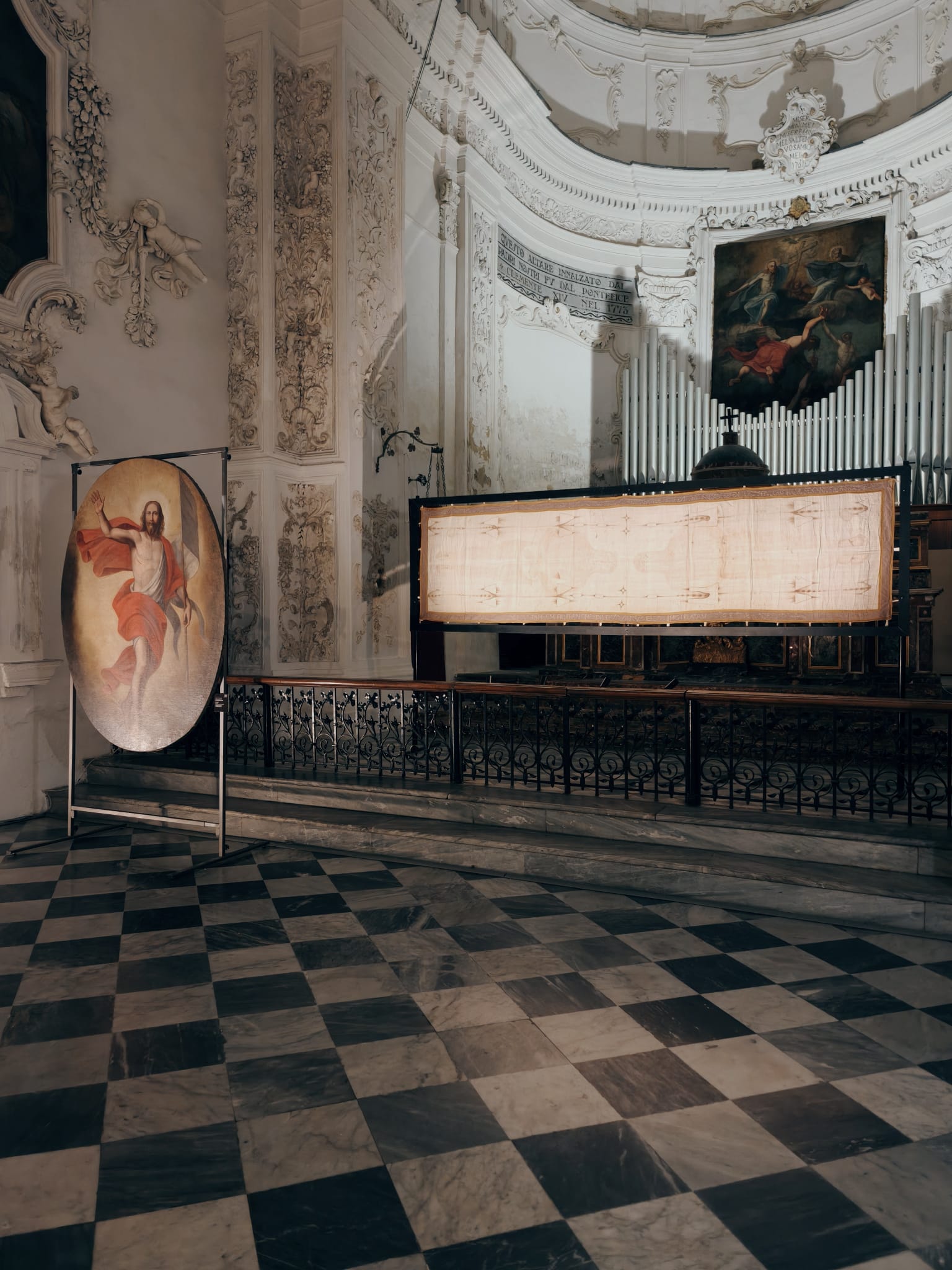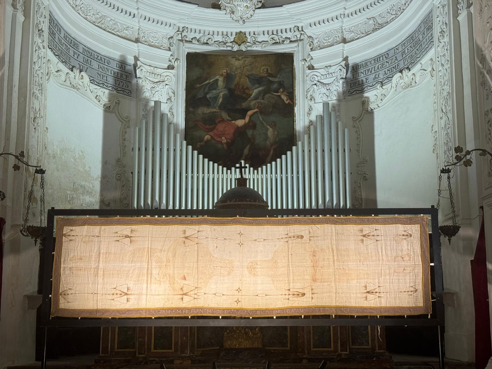 Cuore spirituale dell’esposizione è la copia della Sacra Sindone, custodita nella Cattedrale di Agrigento, mentre i canti gregoriani accompagnano i visitatori in un’atmosfera di meditazione.