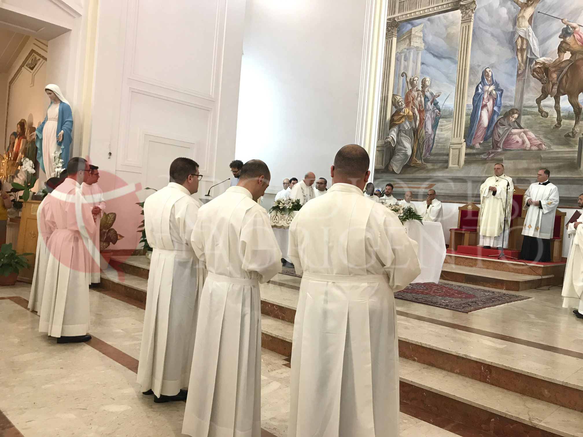E, rivolgendosi con determinazione ai seminaristi ha proseguito: «Ragazzi se questa non è la vostra idea di Chiesa non andate avanti! Se qualcuno ha un’idea diversa di Chiesa abbia il coraggio di fermarsi! Questa è la Chiesa che oggi il Papa ci propone e che noi dobbiamo costruire. Se ci state continuate; se avete sogni nostalgici, fermatevi! È necessario – ha proseguito – avere il coraggio di girare pagina e vivere obbedienti a chi per noi è Vicario di Cristo, per poter realizzare oggi quella Chiesa di cui c’è bisogno. Guardate – ha concluso – a Maria, la donna del ‘sì’, dell’obbedienza, la donna del coraggio. Noi vi affidiamo a lei e insieme possiamo portare avanti il nostro cammino”.