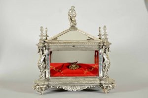 - Sono esposti il pendente reliquiario della Sindone del sec. XVII; l’urna d’argento del 1684; ostensori del 1738 e del 1776; paramenti sacri ricamati in oro del sec. XVIII, statue di San Pietro e San Paolo dell’Incontro di Pasqua.