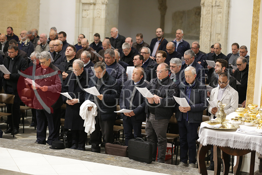 Al termine della riflessione di don Vito l’arcivescovo ha presieduto la Celebrazione Eucaristica, concelebrata dai presbiteri presenti, per ricordarci, ha detto, che sull’Eucarestia “si fonda la nostra unità e il nostro bisogno di camminare insieme «tutti concordi verso la meta»”.