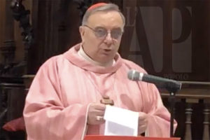 Nell’omelia, commentando la liturgia della Parola, l’arcivescovo ha esordito dicendo: “Anche oggi, con la sua Parola Dio, ci da molta consolazione e forza”. Ed ha invitato ad accoglierla “come la sua carezza per incoraggiarci nella situazione che stiamo vivendo; spero – ha proseguito – che davvero la sua Parola trovi spazio nelle nostre giornate trascorse fra le mura di casa”. Ha invitato, quanti, dalle loro case lo seguivano in streaming, a “tirare fuori dai cassetti la Bibbia… Mettetela in vista – ha esortato – in un luogo dignitoso e centrale della casa, leggetela ogni giorno. Il farlo è vivere in compagnia e in comunione con Dio. Considerate – ha affermato – il posto dove collocate il Vangelo come il tabernacolo della famiglia, la vostra piccola chiesa domestica”. Tornando alle letture della domenica e al brano del Vangelo, la guarigione del cieco nato, ha ricordato come “ il tema dominante è quello della luce. Dio è la sorgente della luce; Lui è la luce e ha mandato tra noi il Suo Figlio che è la luce della vita; e quando, lo accogliamo diventiamo a nostra volta luce. Dove c’è luce – ha proseguito l’Arcivescovo – c’è vita, c’è armonia, c’è bellezza; il suo contrario – il buio – fa pensare alla morte, all’ oscurità, ci blocca nei movimenti. Dio si presenta da subito come luce; nella creazione la luce è la sua prima “creatura… Penso che in momenti come quelli che stiamo vivendo – ha detto – ci faccia bene meditare un po’ sulla luce. Siamo tutti preoccupati e impauriti per quello che sta avvenendo; nuvole grigie ci sovrastano; sono tante le domande che ci facciamo sul presente e sul futuro. Mai come ora – ha affermato – abbiamo bisogno della luce di Dio; di un Padre che si mette accanto, ci prenda per mano e con la luce della sua lampada ci conduca là dove i nostri occhi non riescono a vedere. Abbiamo pregato (salmo): “Il Signore è il mio pastore, non manco di nulla”. Il Salmista paragona Dio a un pastore che non fa mancare al suo gregge ciò che gli serve;… il pastore, resta con le sue pecore, le guida e le protegge. Facciamo in modo – ha detto- che la luce della fede illumini questa difficile situazione che stiamo vivendo. Non possiamo cedere allo sconforto o alla disperazione. Dobbiamo attraversare questi giorni con la luce della fede, con la certezza che Dio non ci lascia soli e ci da’ il suo aiuto per affrontare qualsiasi difficoltà”. Commentando, poi, l’incontro tra Gesù e il cieco nato ha fatto notare come “c’è molto di più di un miracolo; c’è un cammino di fede, la scoperta di Gesù unita a una profonda adesione a Lui; il cieco, infatti, poco alla volta, ‘scopre’ Gesù e si unisce a Lui; riconosce davanti a tutti quello che Lui ha fatto e senza timore ripete: ‘so soltanto so questo: che prima non ci vedevo e adesso ci vedo’; e, alla fine, fa la sua professione di fede: ‘Credo, Signore’ “. L’Arcivescovo si è poi soffermato sull’atteggiamento di Gesù che si fa prossimo al cieco. “Mentre gli altri – ha proseguito – sono preoccupati di scoprire di chi è la colpa della cecità o perché Gesù ha compiuto il miracolo di sabato, l’evangelista Giovanni si concentra sull’unica cosa che conta: Gesù si accorge di quell’uomo e prende l’iniziativa. Si coinvolge nella vicenda del cieco; si accorge di lui, gli spalma il fango sugli occhi, gli parla, lo apre ad orizzonti più grandi”. Ha esortato, coloro che ascoltavano, a mettersi al posto di quel cieco. “Gesù – ha continuato – ci raggiunge, si accorge della nostra situazione e ci risolleva. Quanto stiamo vivendo – ha proseguito – ha modificato molte delle nostre pratiche cristiane. Non possiamo uscire, non abbiamo – purtroppo – la possibilità di ritrovarci insieme in chiesa per celebrare l’eucarestia. Sembrerebbe quasi che il nostro cristianesimo, in questo momento, sia contraddistinto dal segno “meno”. Ma siamo sicuri che è così? Siamo sicuri di essere “senza” qualcosa – si è chiesto – oppure, alla luce del Vangelo di oggi, possiamo e dobbiamo dire di essere anche ora “con” Qualcuno?… In questo momento difficile – ha detto – Lui è con noi; Lui soffre con noi, Lui lotta con noi, Lui è dentro di noi e questo ci deve dare tanta, tanta serenità… Con Lui vicino possiamo dire: ce la faremo perché il Signore è dalla nostra parte!” Facendo, poi, riferimento alla scorsa domenica (vedi) quando ha chiesto di tornare a considerare l’importanza del rapporto con Dio vissuto in spirito e verità, anche in assenza delle nostre chiese è ritornato ancora sul questo concetto ricordando che “ il nostro essere luce oggi va testimoniato soprattutto nelle nostre case. Forse – ha proseguito – non eravamo più abituati a stare con noi stessi o con i nostri cari. La frenesia della vita prima del corona virus ci aveva fatto perdere di vista l’importanza dell’interiorità, del pensare a noi, e la stessa presenza dei nostri cari era ormai un’abitudine, ma in senso negativo: si parlava poco tra noi e la tv è diventata la padrona di casa. Lo stare a casa – ha detto – ci potrebbe aiutare a riandare verso il centro della nostra vita per capire se in essa è presente la luce oppure no.
