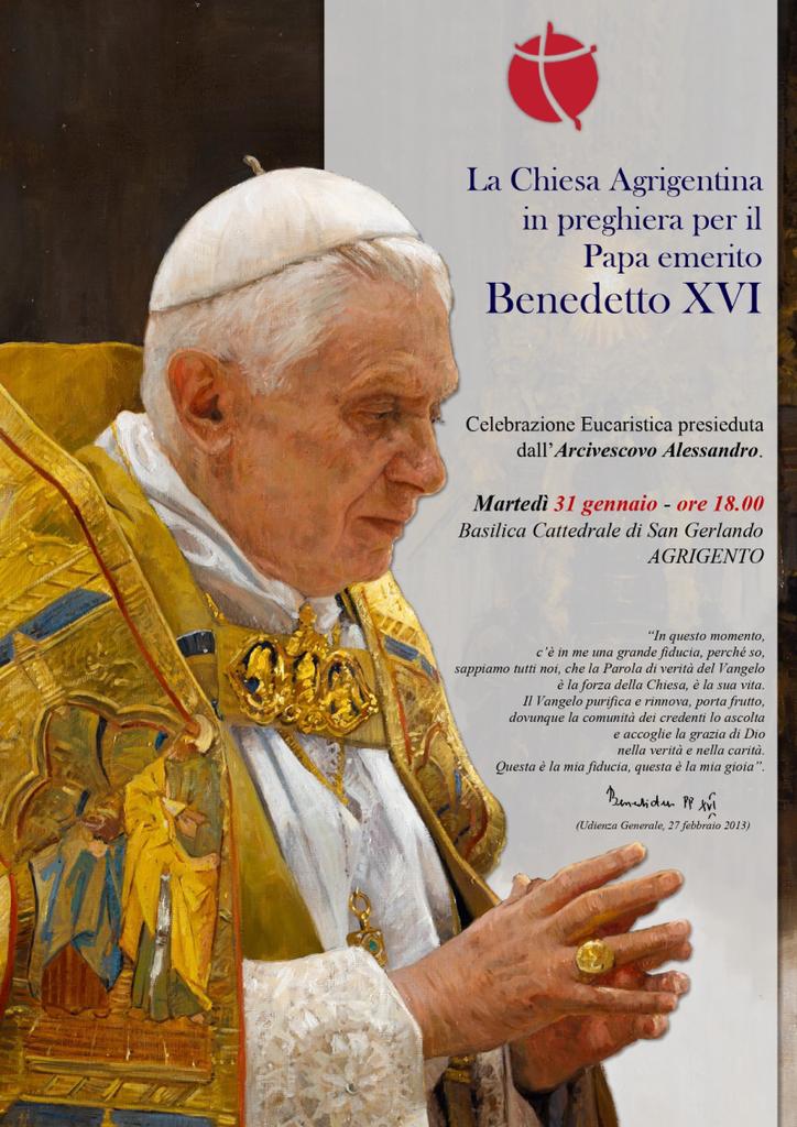 Martedì 31 gennaio 2023, alle ore 18.00, nella Basilica Cattedrale “San Gerlando” di Agrigento, la Chiesa agrigentina, guidata dall’arcivescovo Alessandro, che presiederà la S. Messa, si riunirà in preghiera per ringraziare il Signore per il dono del Pontificato di Benedetto XVI e affidarlo nella speranza cristiana, al Signore della vigna, “nella cui vigna ha lavorato indefessamente e umilmente fino alla fine” come ha scritto mons. Damiano nel messaggio il giorno della morte (vedi).