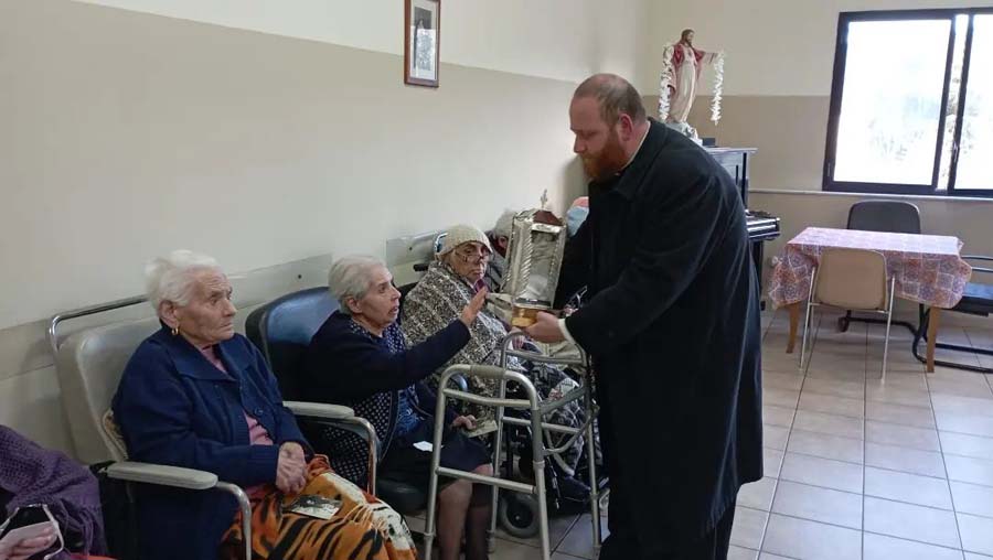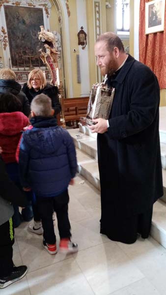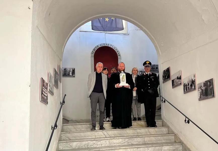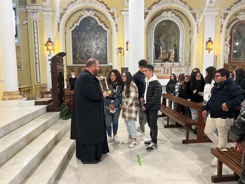 A scandire i quattro giorni di presenza nella comunità racalmutese intensi momenti di riflessione e preghiera, che hanno coinvolto le istituzioni, le scuole e diverse altre realtà della vita pubblica e lavorativa. Una messa inaugurale, celebrata dal direttore del Centro per l’Evangelizzazione, don Gero Manganello, ha accolto la reliquia del giudice. Nel corso delle mattinate, le visite delle scuole elementari, medie, e superiori. Bambini e ragazzi hanno avuto modo di esternare pensieri ed emozioni, presentando i lavori realizzati in preparazione alla peregrinatio. “È stata un’esperienza forte, sia per i più piccoli che per i grandi”, dice la Dott.ssa Carmela Campo, Dirigente scolastica dell’Istituto Comprensivo Leonardo Sciascia. “Le osservazioni più curiose e semplici dei bambini hanno permesso di ragionare sulla distinzione tra “buoni e cattivi” e sull’importanza dei buoni esempi. Quella dei più grandi è stata un’esperienza ricca di contenuti che ha innescato una riflessione più ampia sul fenomeno della criminalità organizzata e su come l’agire con giustizia possa combatterne le insidie. Qualcuno si è anche domandato cosa c’entrasse la lotta al crimine con la fede e questa è stata l’occasione per sottolineare l’imprescindibilità della coerenza, dell’unità tra il nostro ruolo nella società e la fede, che la vita del giudice Livatino ha perfettamente incarnato”. Nel periodo prenatalizio, gli studenti hanno approfondito la figura del Beato Livatino, come giudice, uomo e cristiano. “Ne hanno scoperto o conosciuto meglio la storia, accogliendola con grande curiosità e ammirazione”, continua la Prof.ssa Maria Assunta Romano, insegnante di religione presso la Scuola Media dell’Istituto Comprensivo Leonardo Sciascia. “A colpirmi è stato il silenzio dei ragazzi davanti a quella camicia intrisa di sangue, simbolo di un sacrificio non vano. Alcuni di loro si sono commossi dinnanzi all’esempio di vita del giudice, da tenere vivo nei cuori e nelle idee”. Nei giorni di permanenza a Racalmuto, la reliquia ha visitato la Casa di riposo, il Comune e la miniera di sale Italkali. In un’aula consiliare gremita, dipendenti e istituzioni hanno pregato davanti alla reliquia del Beato, riconoscendo la grandezza che si cela dietro all’ordinario vissuto con dedizione, onestà, passione. “Un’occasione unica per il nostro Paese, per le istituzioni e anche per i dipendenti del Comune di Racalmuto”, dice il Sindaco, Vincenzo Maniglia. “Il sacrificio del Beato Rosario Angelo Livatino lascia una traccia indelebile nelle coscienze delle persone. Mette in risalto i valori umani della prossimità, della solidarietà. Mantenere saldi questi valori è fondamentale per la società e per le nuove generazioni in particolare.